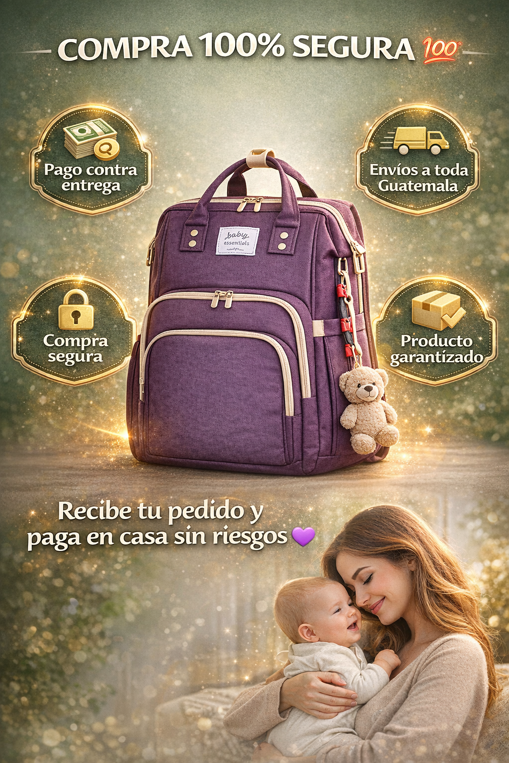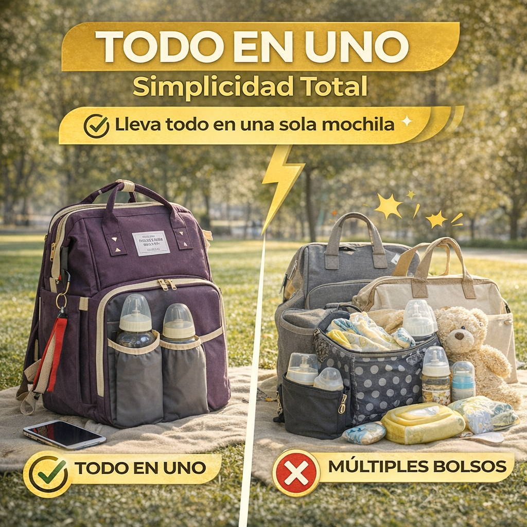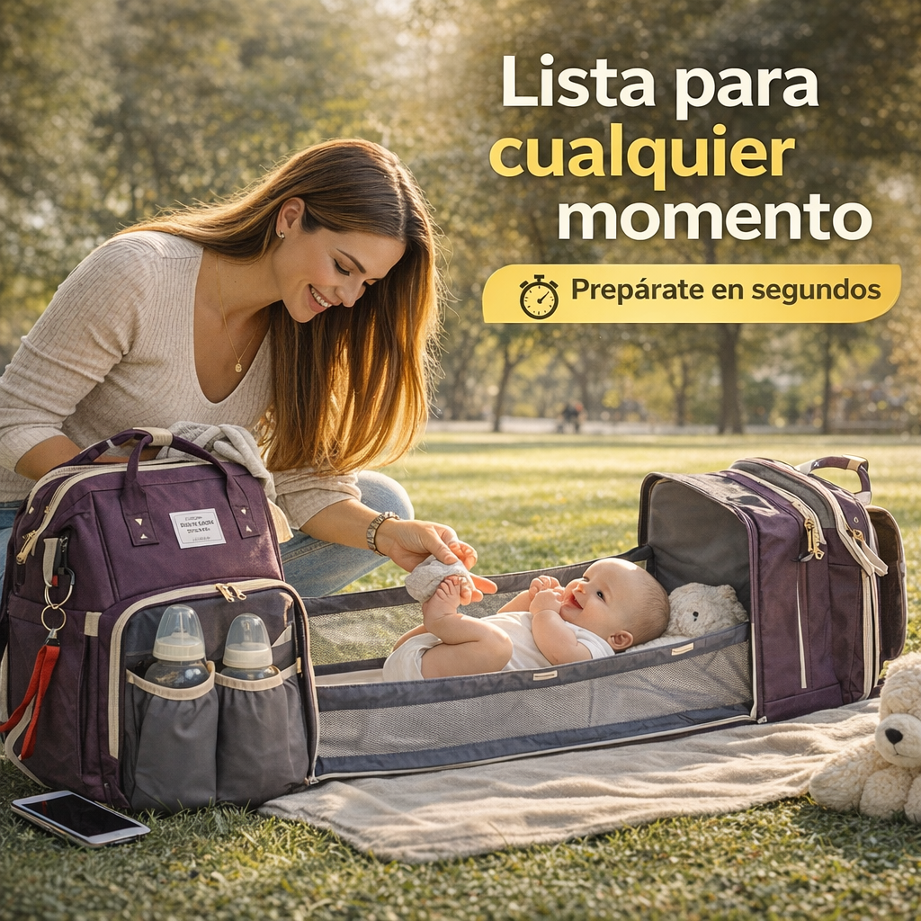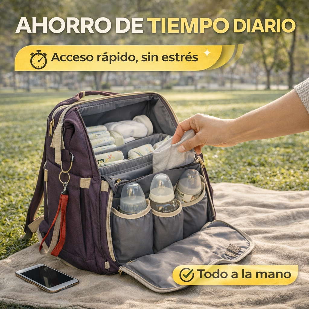 “El otro día estaba en el parque y mi bebé necesitó cambio urgente… en segundos ya tenía todo listo. Antes eso hubiera sido un caos. Esta mochila me salvó.”